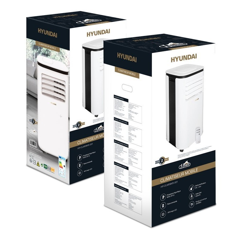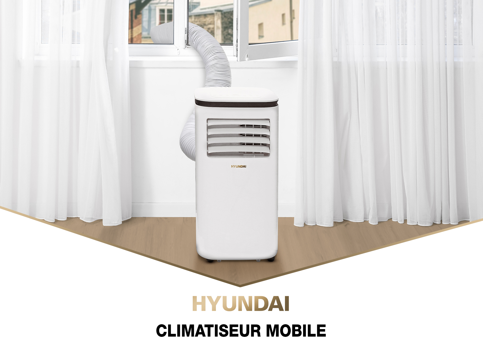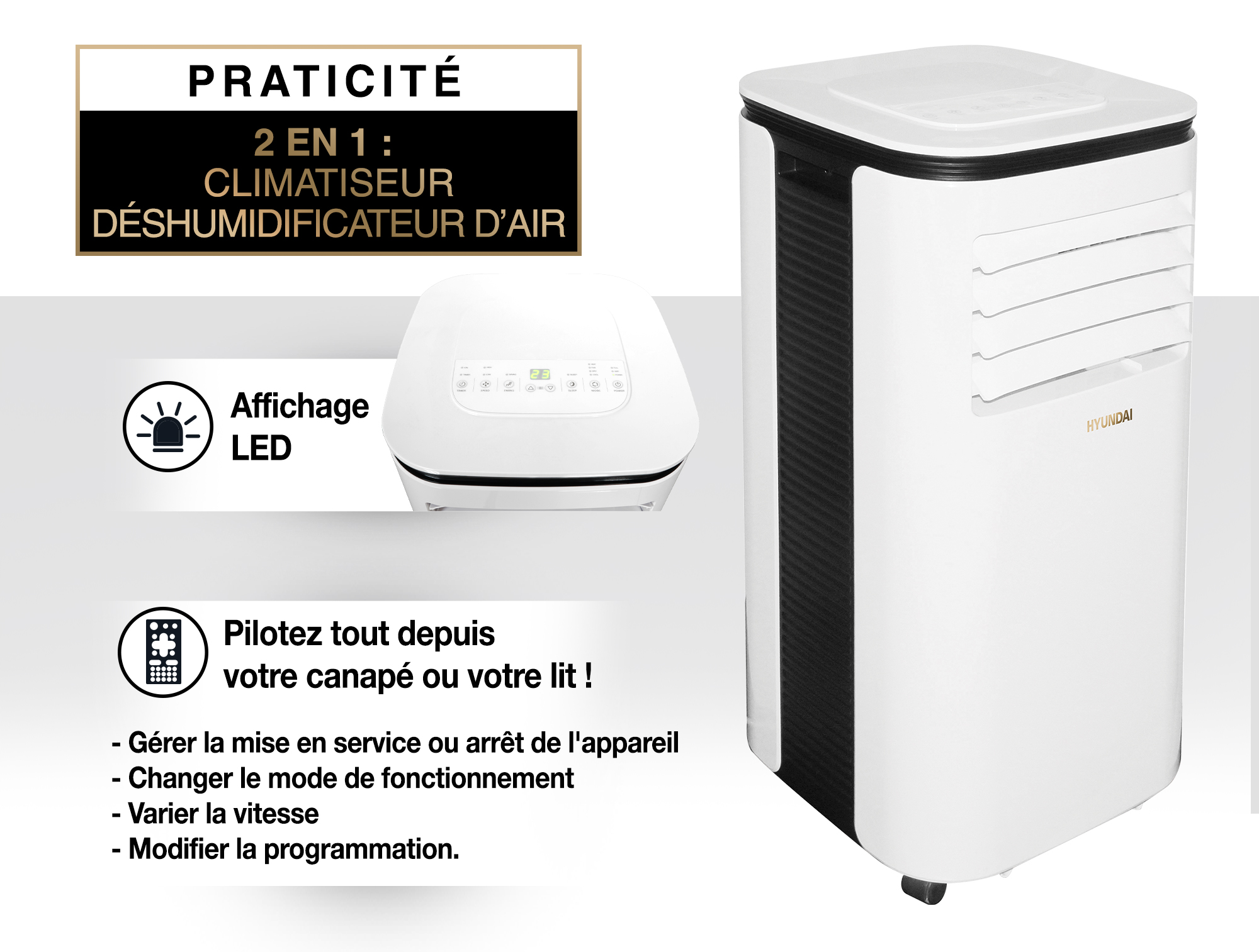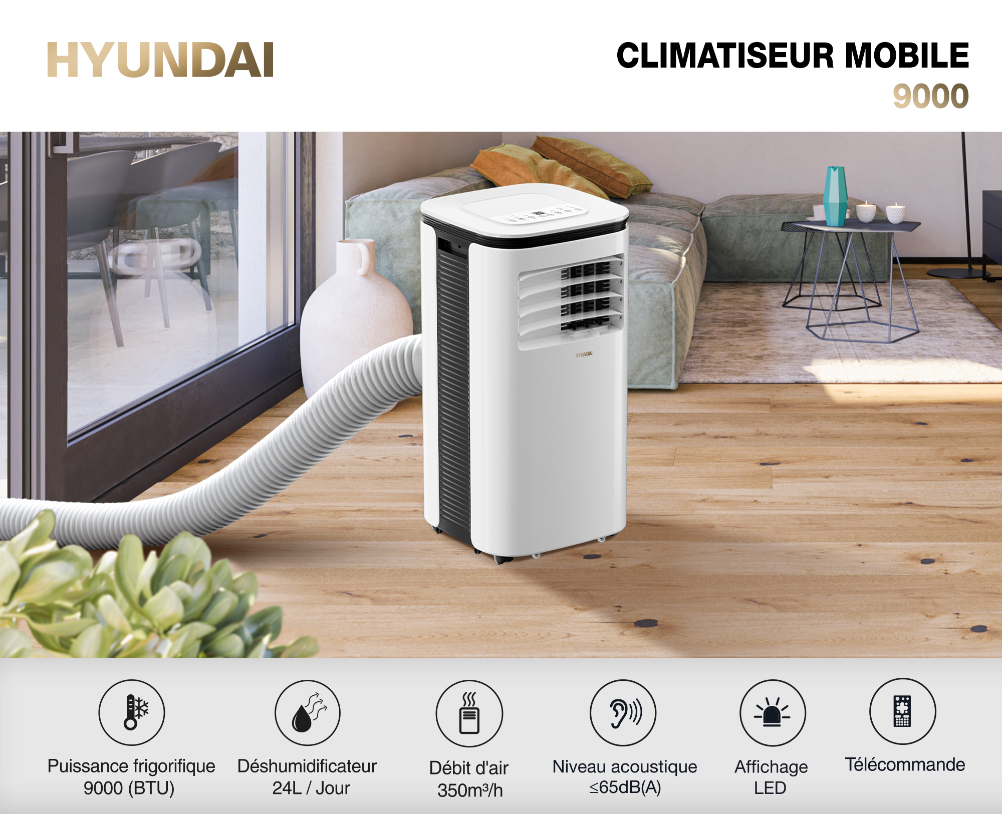 HYUNDAI Climatiseur mobile 9000 BTU dispose d'un écran LED et d'une télécommande de contrôle.