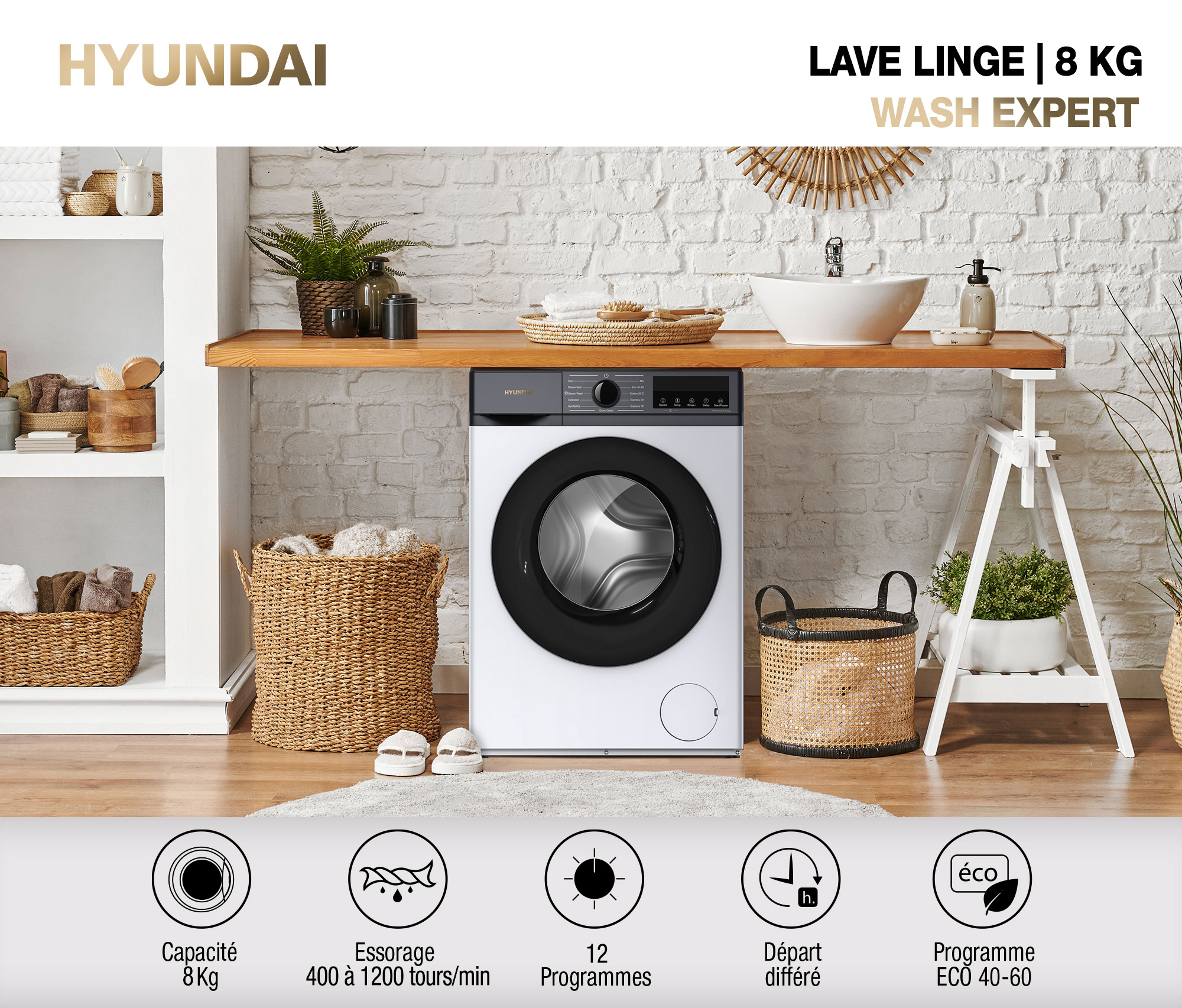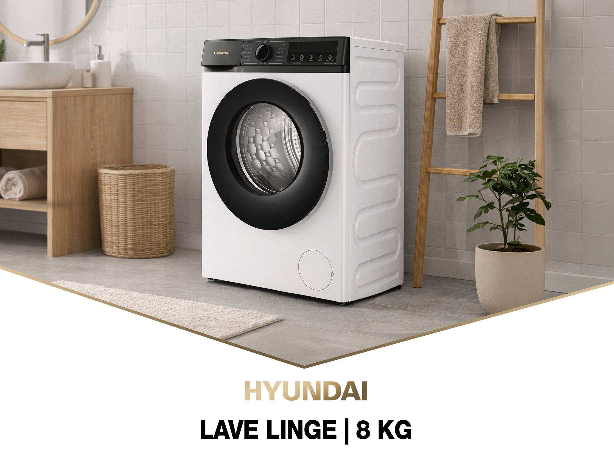 Le lave-linge Hyundai Daily Wash 8 kg allie performance, simplicité et fiabilité pour votre buanderie quotidienne. Avec sa capacité généreuse de 8 kg, il est parfait pour les familles ou les ménages actifs à la recherche d’un lavage efficace sans compromis. Grâce à son affichage LED intuitif et à ses 12 programmes polyvalents, vous pouvez facilement choisir le cycle adapté à chaque type de linge — du coton délicat aux synthétiques ou cycles rapides. Les fonctions pratiques comme le départ différé, la sécurité enfant et le système Aquastop offrent tranquillité d’esprit et flexibilité d’utilisation. Sa vitesse d’essorage de 1200 tours/min contribue à un linge moins humide et à des temps de séchage plus courts. Enfin, son design moderne en blanc s’intègre parfaitement dans toute buanderie.