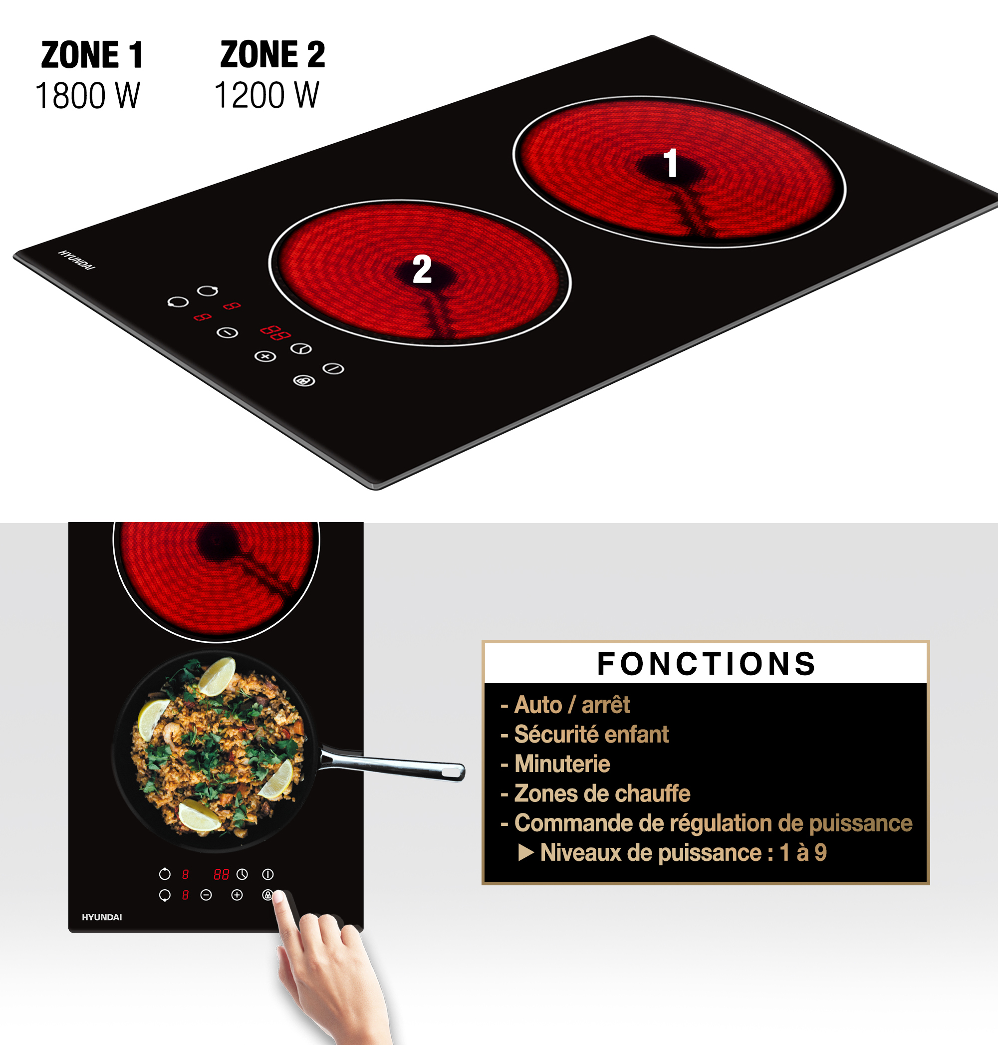 Plaque vitrocéramique 4 foyers Table de cuisson 6000W 9 puissances - touche tactile