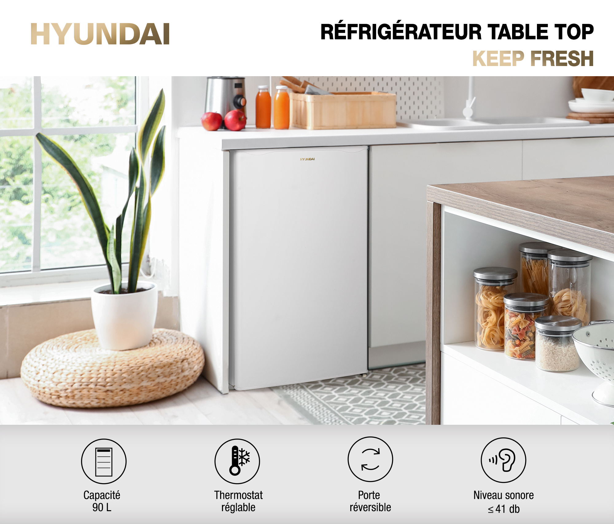 Disponible en Blanc ou Silver, ce réfrigérateur Hyundai allie fonctionnalité et esthétique, faisant de lui le compagnon idéal pour un mode de vie moderne. Ne laissez pas la place restreinte vous freiner ; optez pour le KEEP FRESH et maintenez vos aliments à portée de main et toujours frais !