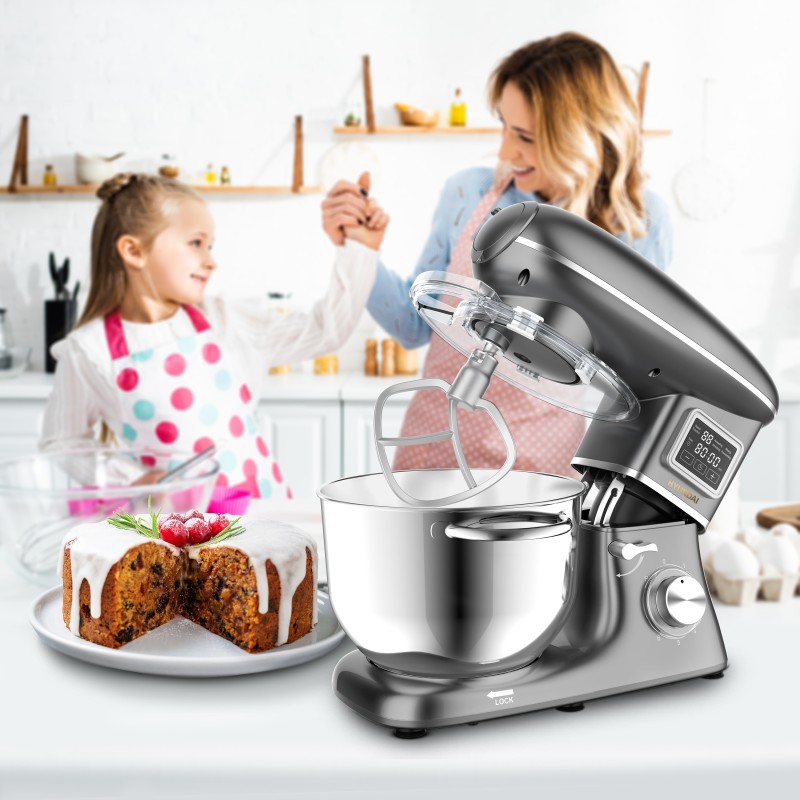 Robot pâtissier 1400W 5.5L 6 vitesses pétrin, mélangeur, fouet