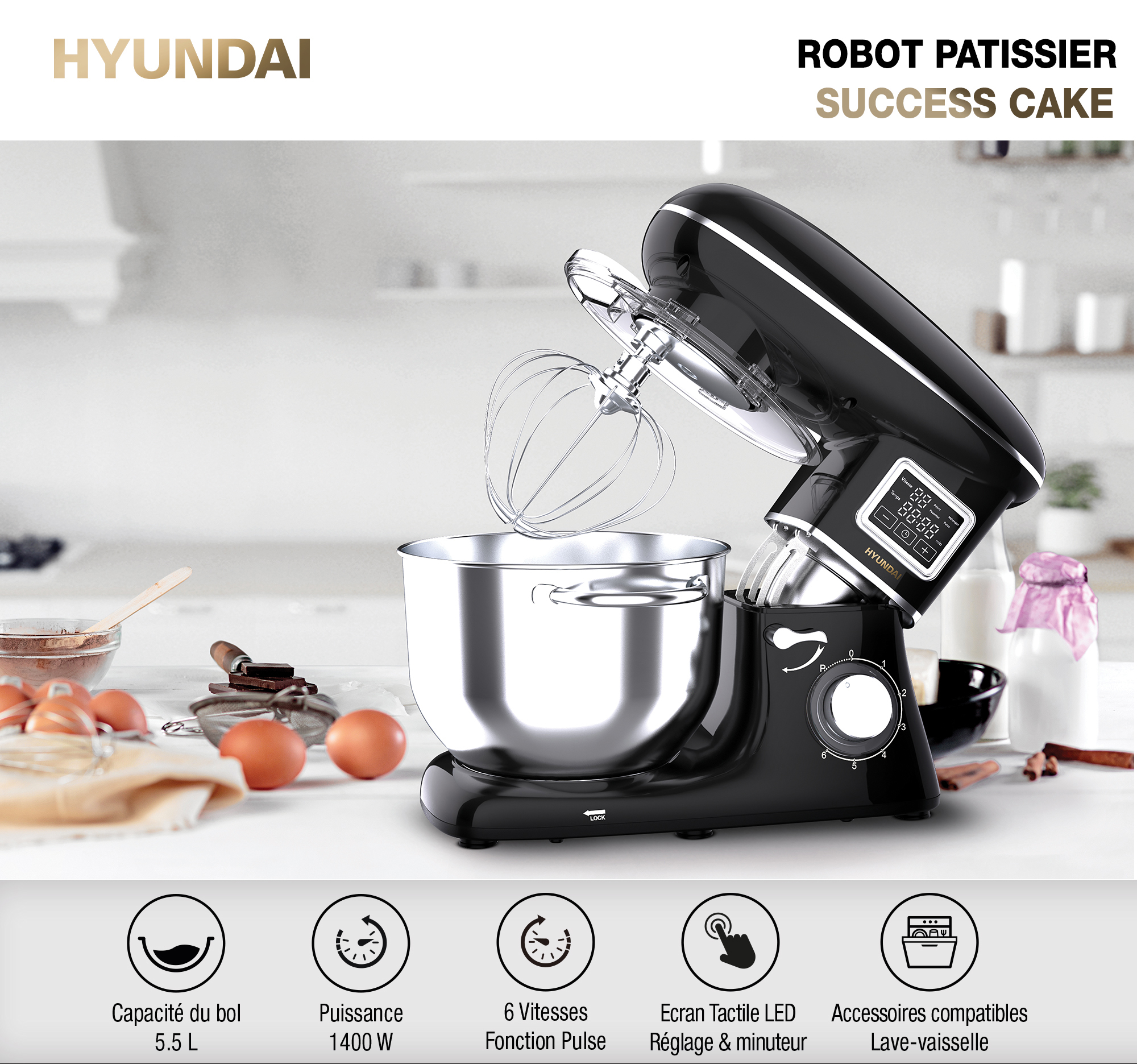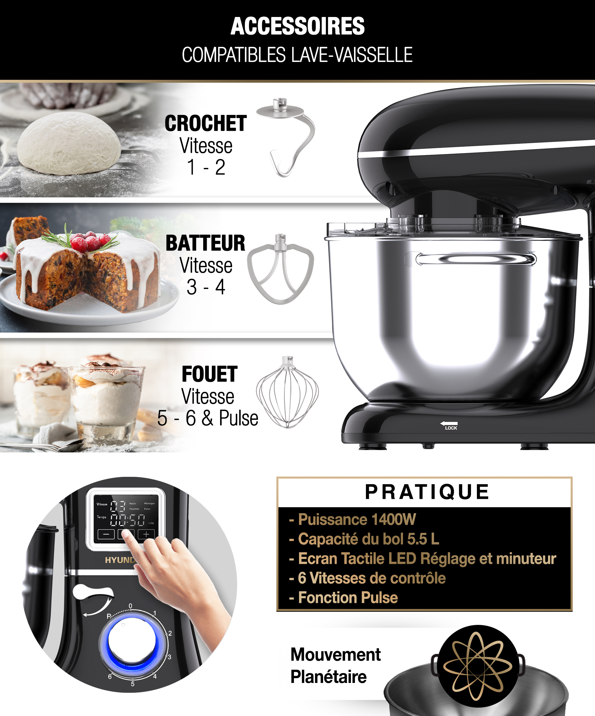 Robot pâtissier 1500W 6.2L 6 vitesses blender hachoir et spatule